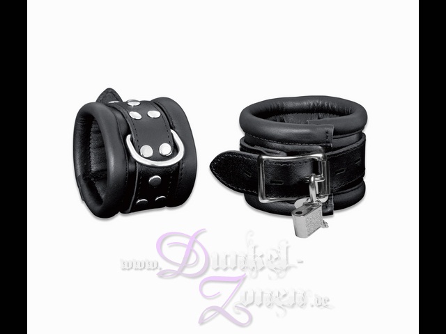 Leder Handfessel ca. 6,5 cm breit gepolstert abschließbar.
